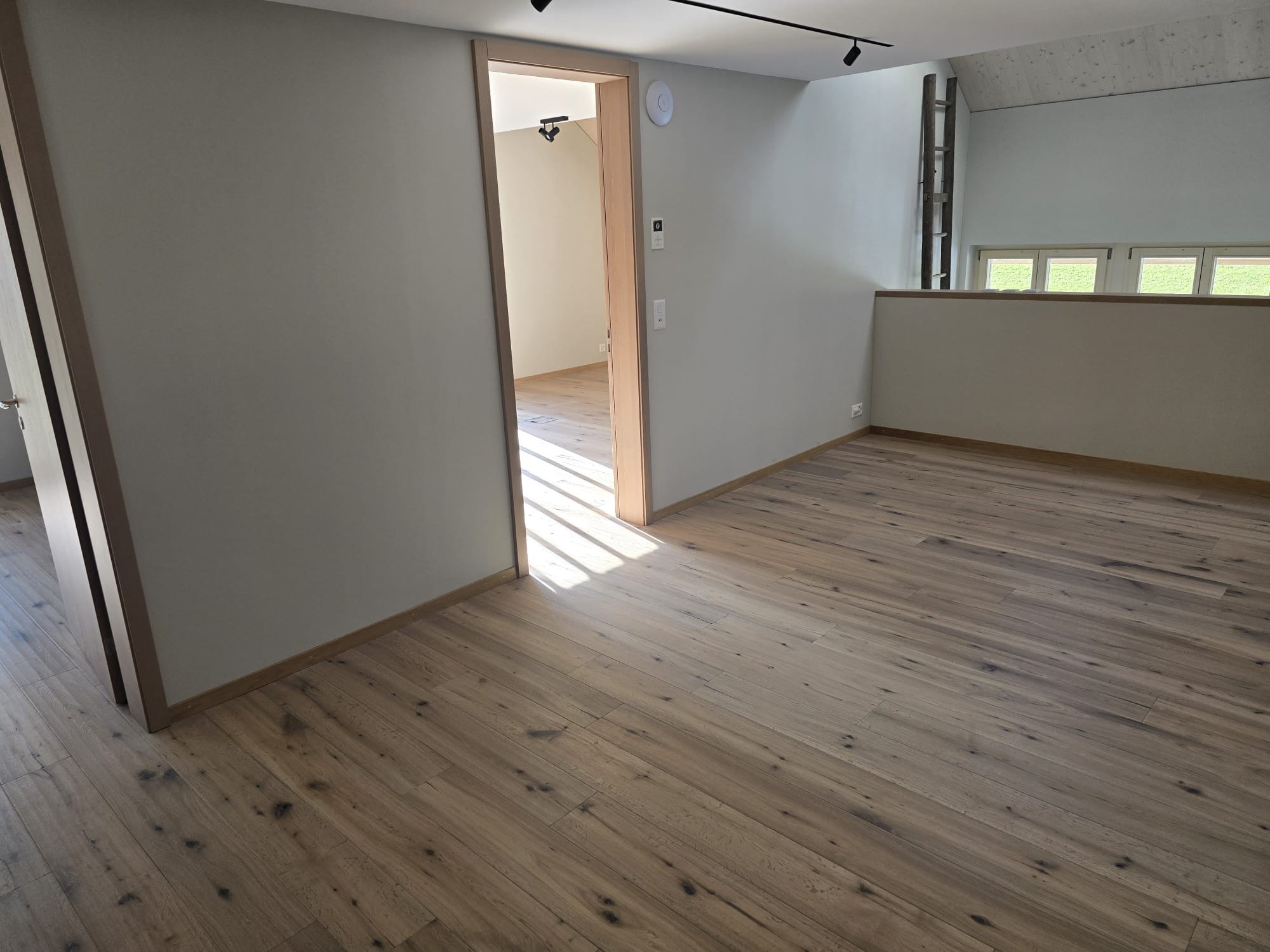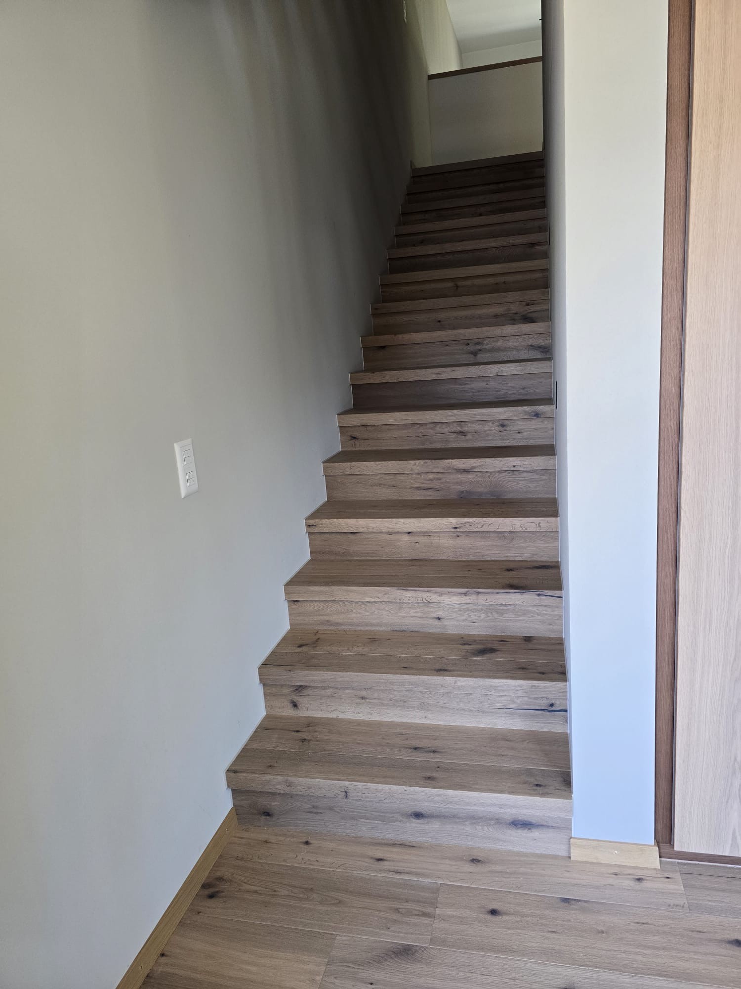 Treppe EG-OG mit Parkett belegt, Auftritt und Kante 50 mm und Stirnbretter