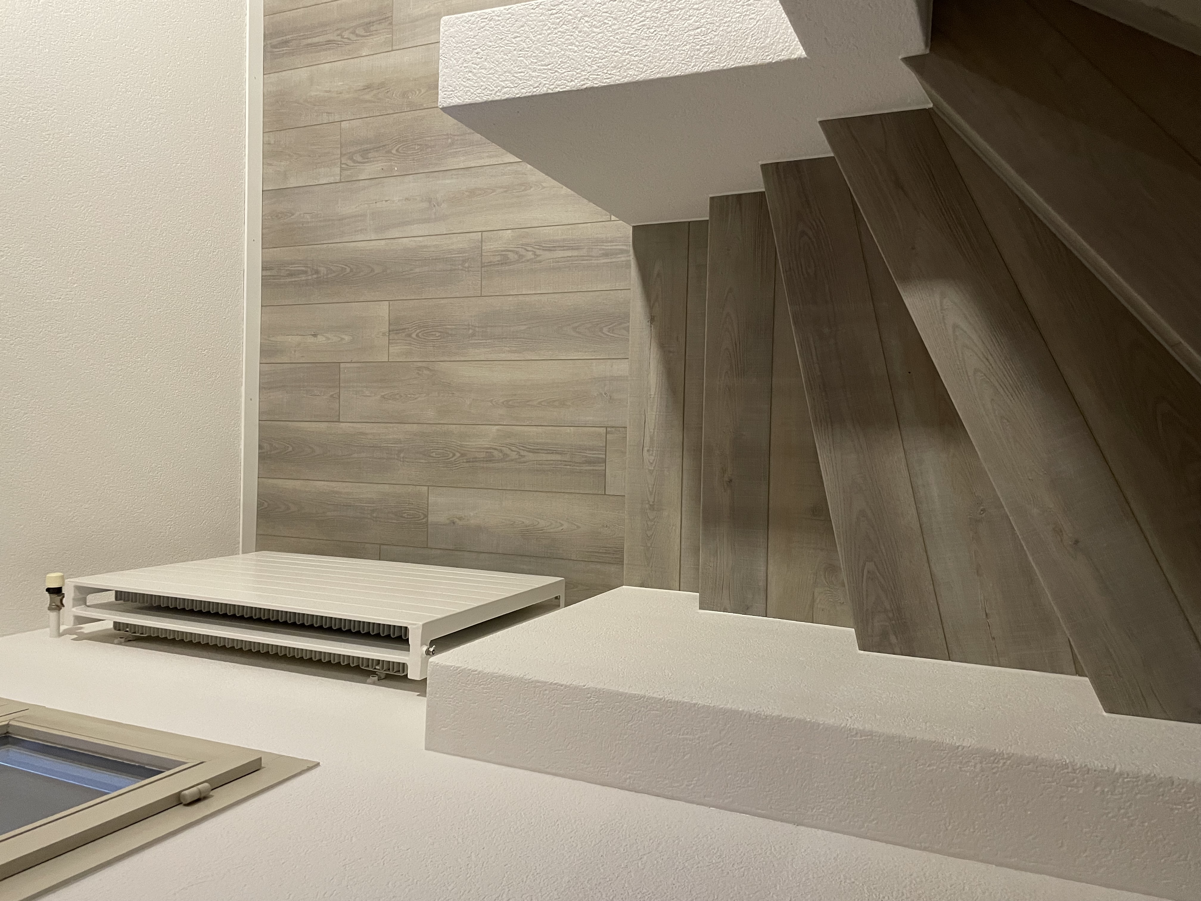 Treppe Vinylbelag Core Tec Wood Naturals Haze auf Auftritt und Stirne
