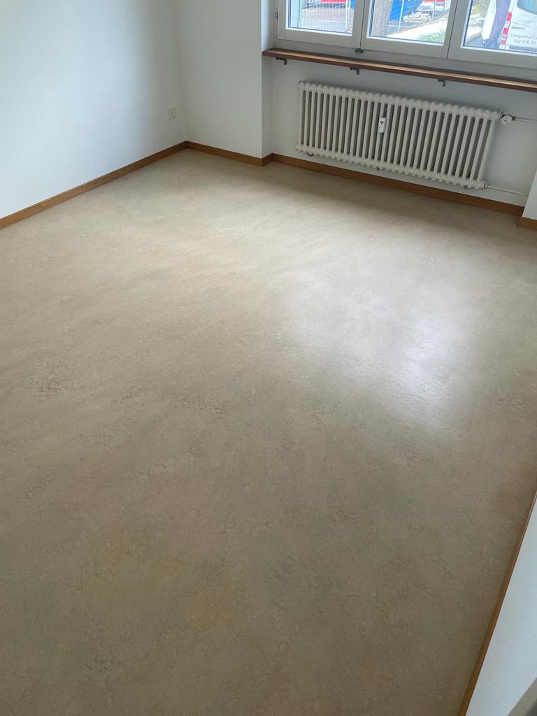 Grundreinigung Linoleum danach mit Hartversiegelung Dr. Schutz Secura neu beschichtet