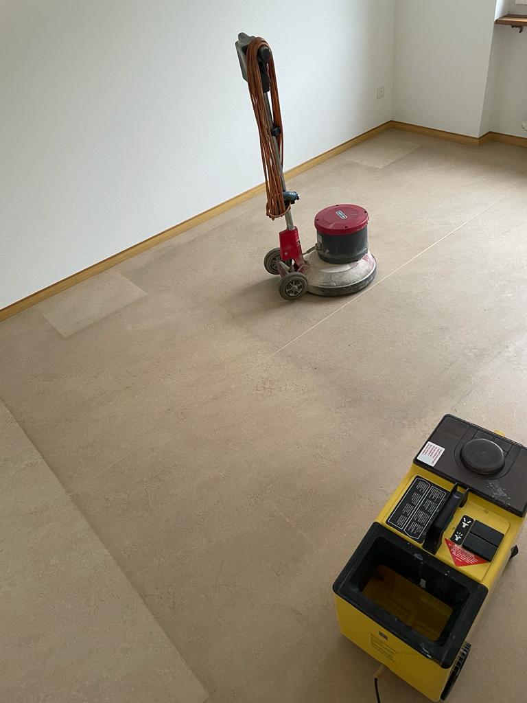 Grundreinigung Linoleum danach mit Hartversiegelung Dr. Schutz Secura neu beschichtet